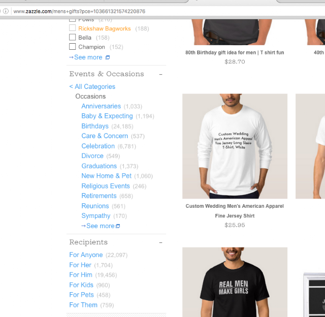 The Events & Occasions and Recipients navigation in the left hand column on some Zazzle pages are actually "categories" as per their RSS feed definition. This means you can use them as another way to specify what you want in feed requests.