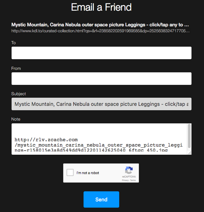 Now you're ready to fill in the secret "To" email address, currently the one shown in the first screenshot. Next, fill in the From email address (use your own - note that I won't see this), do the Captcha and hit send.