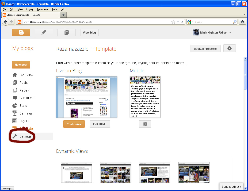 Click the highlighted Settings link - the one with a spanner - "wrench" for my USA visitors - next to it.