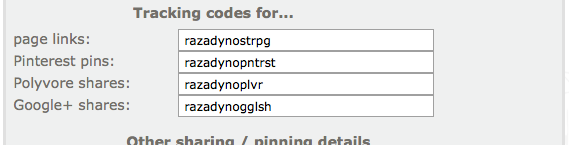 | each place where the products on your page can be shared has its own tracking code |
