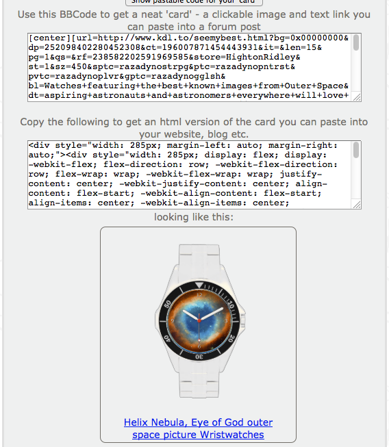You also get another button: Show pastable code for your 'card'...